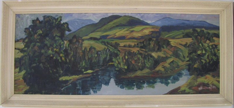 Dielo je rámované. Rozmery diela s rámom: 47,5 x 106,5 cm.