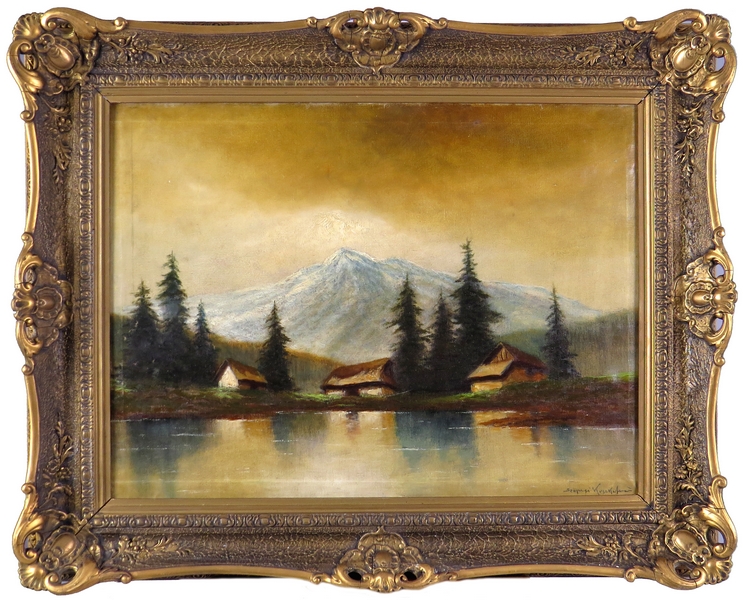 3 651,33 € - Pohľad na Tatry. Okolo 1910. Olej na plátne. 100 x 150 cm.