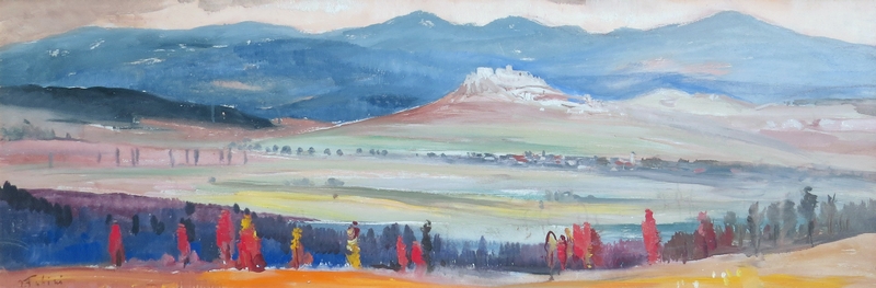 28 000 Sk,- Spišská dedina.Tempera na kartóne, 44 x 58 cm. (DARTE - 25.9.2005)