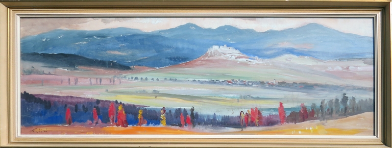 23 000 Sk,- Pohľad na dedinu.Tempera na kartóne, 45 x 47 cm. (DARTE - 20.6.2007)