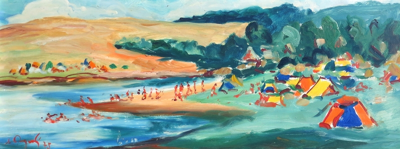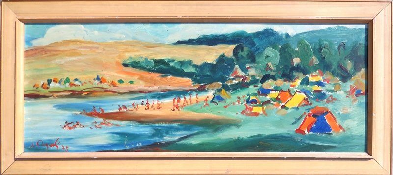 28 000 Sk - Jarné trhy. Olej na kartóne, 60 x 85 cm.