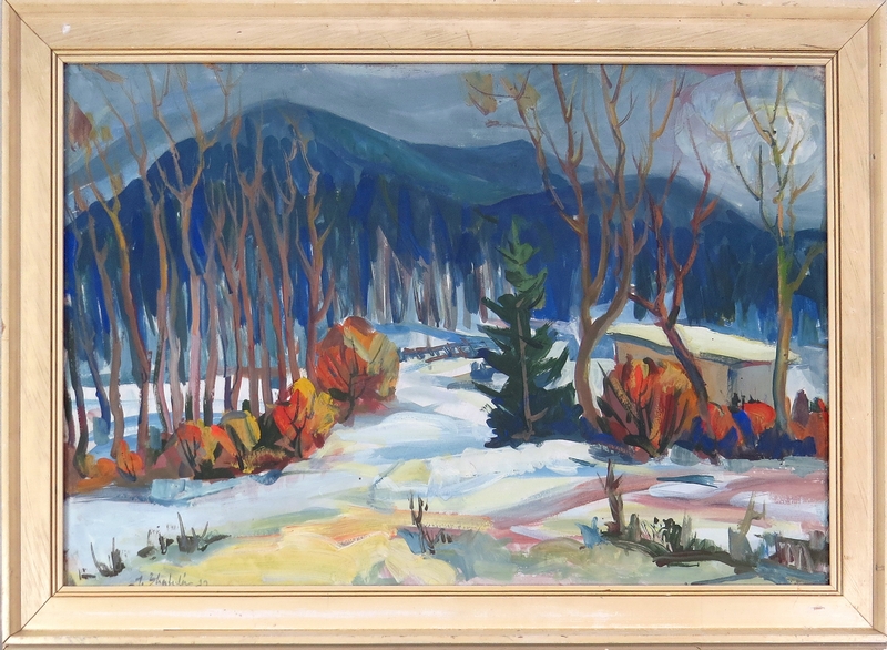 16 000 Sk - Zimná dedina. Olej na lepenke, 70x102 cm. (DARTE - 20.3.2005)