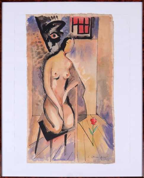 Čerstvo nahodená štúdia pôsobí sviežim dojmom a bola zrejme inšpirovaná momentom, ktorý prekvapil autora. Ženská nahá postava kľačiaca na stoličke hľadí na kvet, ktorý vyrastá z podlahy interiéru, uzavretého priestoru s náznakom okna s mrežami. Nad ženou visí čierne oko, stála kontrola, ktorá zatemňuje zadnú stranu jej hlavy, aj postavy. Predná strana hlavy však aj napriek tomu, že sa na nej nenachádza tvár, ani výraz tváre, je zaliata svetlom a upriamená na kvet. Weiner-Kráľ miloval a často aplikoval vo svojich dielach podobnú symboliku a spájal do jedného obrazu rôzne momenty a predmety, ktoré vyvolávali a vytvárali prekvapujúce myšlienkové asociácie.