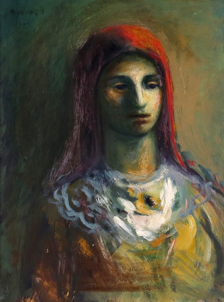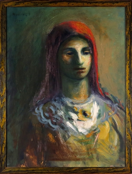 Ponúkané dielo Portrét ženy patrí k ďalším figurálnym prácam od majstra Jána Mudrocha. V roku 1937 vytvoril Mudroch vážnejšie figurálne obrazy : Sediaca , Portrét Ljuby Pavljevy, o pár rokov neskôr diela Žena v čiernom, Dievčatko s bábikou..., v ktorých je už citeľný zárodok kvalitatívne nového prvku neskoršej Mudrochovej maľby. Pribúdanie týchto sonórnych, často melancholických až pesimistických tónov má u Mudrocha dobové korene. Analogický proces pozorujeme u Cypriána Majerníka , Jána Želibského i ďalších predstaviteľov tejto generácie. V rokoch 1939 – 1945 sa u Mudrocha definitívne vyšpecializovali dve typické námetové okruhy : zátišie ( predovšetkým kytice ) a figurálna téma, najmä básnivo cítený ženský portrét – žena v interiéri. Štefan Bednár o Mudrochovi vtedy napísal: „ Mudrochov svet – to je žena v interiéri a zátišie. Jeho záľuba v zátišiach dáva prepojenú zákonitosť aj jeho figurálnym obrazom “ . A to platí aj o ponúkanom diele Portrét ženy.