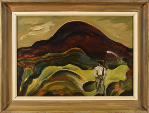 22 000 Sk - Dedinská ulička. Okolo 1965. Olej na kartóne. 34x50 cm.