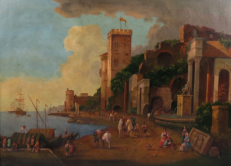 Dielo V prístave je prácou, ktorá je z umeleckohistorického hľadiska zaujímavá skôr svojím obsahom ako prevedením. Zjavná je istá naivita, schematickosť a diletantstvo v spracovaní. Autor vyjadruje kontrast medzi starým, zanikajúcim svetom a dobovou súčasnosťou. Nostalgiu vnášajú antické ruiny, stredoveká veža i lode vydávajúce sa do širokých diaľav, ktoré sú hlavnými nositeľmi emócie. Umelec výberom týchto prvkom dáva divákovi pocítiť melancholický tichý smútok – smútok za niečím minulým, čo sa pomaly vytráca. Výjav osviežujú a rozveseľujú drobné etudky odohrávajúce sa medzi postavami.