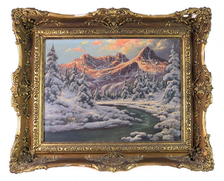 110 000 Sk - Zima v Tatrách. Okolo 1930. Olej na plátne. 70 x 119 cm. 110 000 Sk - Zimný potok. Okolo 1930. Olej na plátne. 60 x 83 cm. 94 000 Sk - Potok v zime. Okolo 1930. Olej na plátne. 59 x 80 cm
