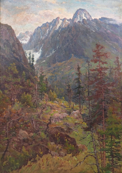 35 000,- Sk Tatranská krajina. Okolo 1945. Olej na plátne. 80 x 100 cm.