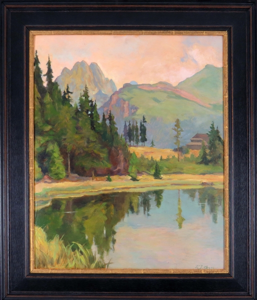22 000 Sk,- Liptov. Okolo 1920. Olej na kartóne. 34x43 cm.