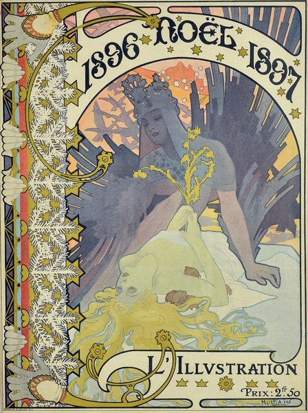 Ponúkané dielo predstavuje podobu obálky špeciálneho vianočného čísla časopisu L´Illustration magazine 1896/1897. Titulný list bol Muchom navrhnutý v roku 1896 a už tradične nesie bohaté symbolické odkazy. Výjav rozpráva o momente prelomu rokov – odchode starého roka a nástupe toho nového. Bledá, umierajúca postava v popredí symbolizuje končiaci sa rok, zatiaľ čo okrídlená postava nad ňou vyjadruje ten začínajúci. Ležiaca žena drží v ruke bodliak, ktorý zvyčajne pripomína hriechy a utrpenie. Nádej na obnovu a vykúpenie je naznačená siluetou kostola v úzadí a ornamentálnym pásom v ľavej časti obálky. Ruky v kresťanskom kontexte môžu naznačovať duchovnú silu, kým ihličnaté vetvičky vianočného stromček poukazujú na vitalitu a silu života. Vložením kresťanskej symboliky chcel Mucha zrejme vyjadriť silu všemocného Boha, v ktorého rukách sú všetky časy.