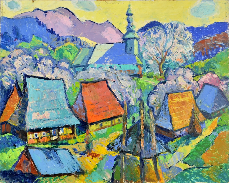 Experimentovanie s explozívnym, svietivým kolorizmom v predmetnej maľbe pripomína dravosť francúzskeho fauvizmu a jeho krikľavých farieb. Príznačné je tiež vytyčovanie obrysových línii výraznejšími tmavými kontúrami, ktoré potláčajú rozplývavosť farieb a tvarov. Rozdiel vidno v precíznejšej modelácii dreveníc, tieňovaní a zložitejšej výtvarnej skratke. Skutočnosť vidieckeho prostredia umelec nevyjadruje reálnym koloritom, ale farbami svojich emócii, ktoré v ňom skutočnosť zanecháva. Tým je podčiarknutá citovosť kompozície a súčasne dekoratívnosť výrazu.