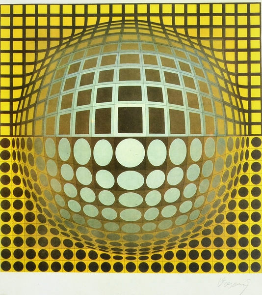 Viktor Vasarely sa narodil 9. apríla 1908 v Péscsi, zomrel roku 1997 v Paríži. Po štúdiách na lekárskej fakulte v Budapešti nastúpil roku 1928 na grafickú školu Alexandra Bortnyika, ktorá sa nazývala "budapeštiansky Bauhaus". Od 1930 žil trvale v Paríži. Po 1945 sa podstatným spôsobom podieľal na Salóne nadnezávislých, Májovom salóne a Salóne des Réalités nouvelles. Najmä za grafiku získal množstvo ocenení na prestížnych medzinárodných prehliadkach. Vo svojom Žltom manifeste roku 1955 definoval myšlienku sériového rozmnožovania a rozširovania umeleckého diela, ktoré sa má stať prirodzenou súčasťou moderného života. Z literatúry: Diehl,G.: Victor Vasarely. Bratislava 1972; Joray, M.: Vasarely - From Fine Arts to Plastic Unity. Neuchatel 1965