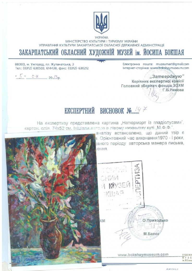 Neobyčajná kvalita, do ktorej sa rozvinulo výtvarné umenie zakarpatskej oblasti spočívala na tvorivosti troch výnimočných maliarskych osobností - Jozefa Bokšaya, Vojtecha Erdélyiho a Fedora Fedoroviča Manajla. Manajlovo výtvarné extempore bolo silne ovplyvnené surrealizmom a expresionizmom, ktorých pôvod nachádzame v Čechách. Neopakovateľná farebnosť a divokosť rukopisnej dynamiky viditeľné v jeho úchvatnej kytici pestrých gladiol poukazujú na suverénnosť skúseného tvorcu hnaného nadbytkom energie a túžbou po zvečnení nevídanej nádhery.