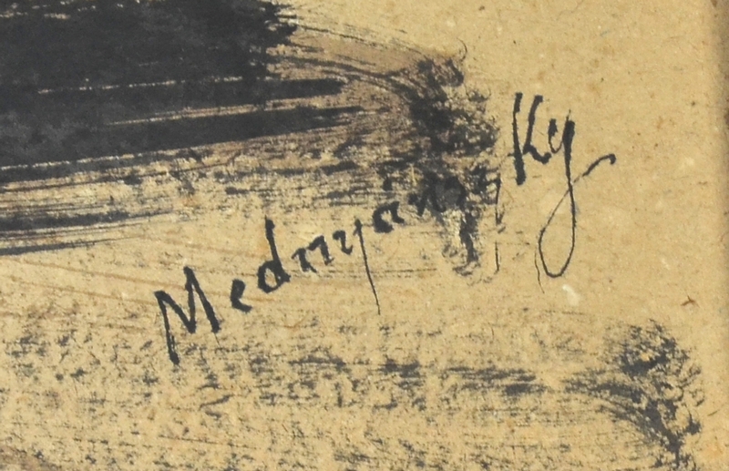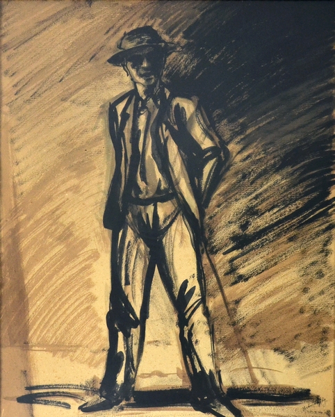 Ladislav Mednyánszky ako jeden z najosobitejších reprezentantov maliarstva záveru 19. storočia v stredoeurópskom priestore sa motivicky okrem krajinomaľby zameriaval rovnako výrazne aj na figurálnu tvorbu. Uchoval sa početný súbor portrétnych štúdií a podobizní, ktoré poukazujú na komplexnú umeleckú orientáciu veľkého majstra. V predmetnom náčrte sa autor sústredil na zachytenie najpodstatnejších čŕt a dominantných telesných znakov pozorovanej osoby. Dôležitým sa stáva dynamický, briskný rukopis v tmavých expresívnych gestách, ktoré sú nositeľmi pôsobivého výrazu.