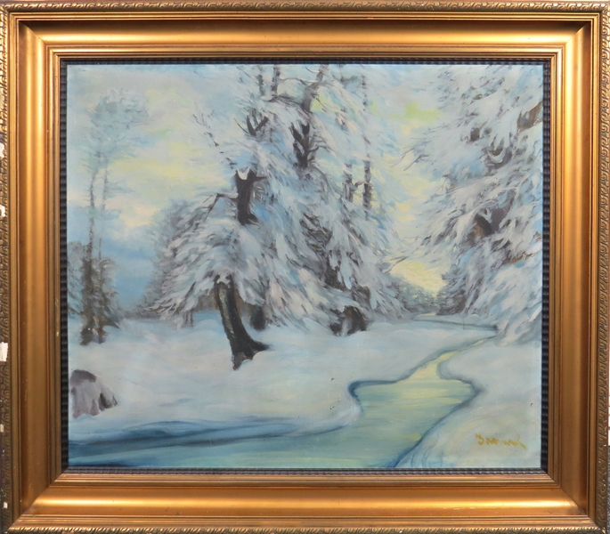 Veľkosť umeleckej osobnosti Antona Jasuscha tkvela v naliehavosti a senzibilite jeho výtvarnej výpovede. Umelec sa okrem iného poúčal postimpresionistickými postupmi, aby na plátne predstavil svoje predstavy o osobitom charaktere svojského koloritu i pomere línií a plôch. Jeho ponúkanú zimnú krajinu so zamrznutým potokom definuje o poznanie umiernenejšia ideová expanzivita. Ani v tejto práci sa však nezaprie Jasuschov zmysel pre farebný tón a výtvarnú gracióznosť. Akosť štýlu, rovnako ako spôsob maľby sa usilujú o uspokojenie dopytu konzervatívnejšieho publika, ktoré si žiada predovšetkým umenie skrášľujúce mestskú domácnosť.