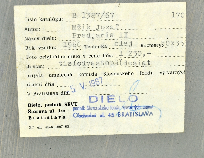 Akademický maliar Jozef Mžik sa narodil v roku 1914 v Ostrave. Študoval na SVŠT u prof. Jána Mudrocha odbor kreslenie a v rokoch 1947 – 1951 na súkromnej škole dekoratívneho umenia u prof. Masáka. Venoval sa krajinomaľbe.