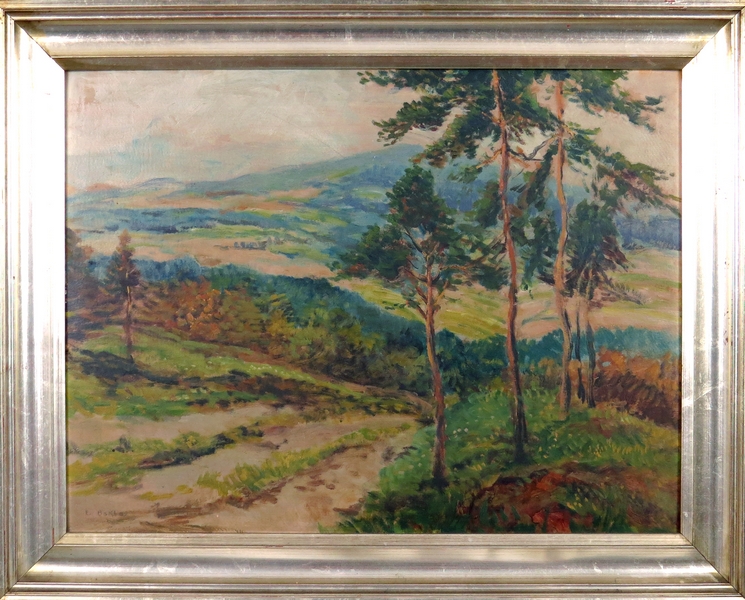 „Čechy jsou líbezná mírně zvlněná úrodná krajina měkkých kontur s modravými kopci v dáli...“, napísala vedkyňa Hana Librová v roku 1988. V súvislostí s uvedeným citátom možno prihliadať i na prezentovanú prácu českého výtvarníka Emanuela Baklu. Maliar sa koncepčne zameral na panoramatický formát, ktorým krajinu členil do horizontálnych vrstiev. Kompozíciu zdynamizoval vertikálami ihličnatých stromov v popredí. Vzdialene ovplyvnený impresionizmom a realizmom sa Baklovou umeleckou zásadou stal zrakový dojem, nie duchovná náplň alebo vnútorná vízia.