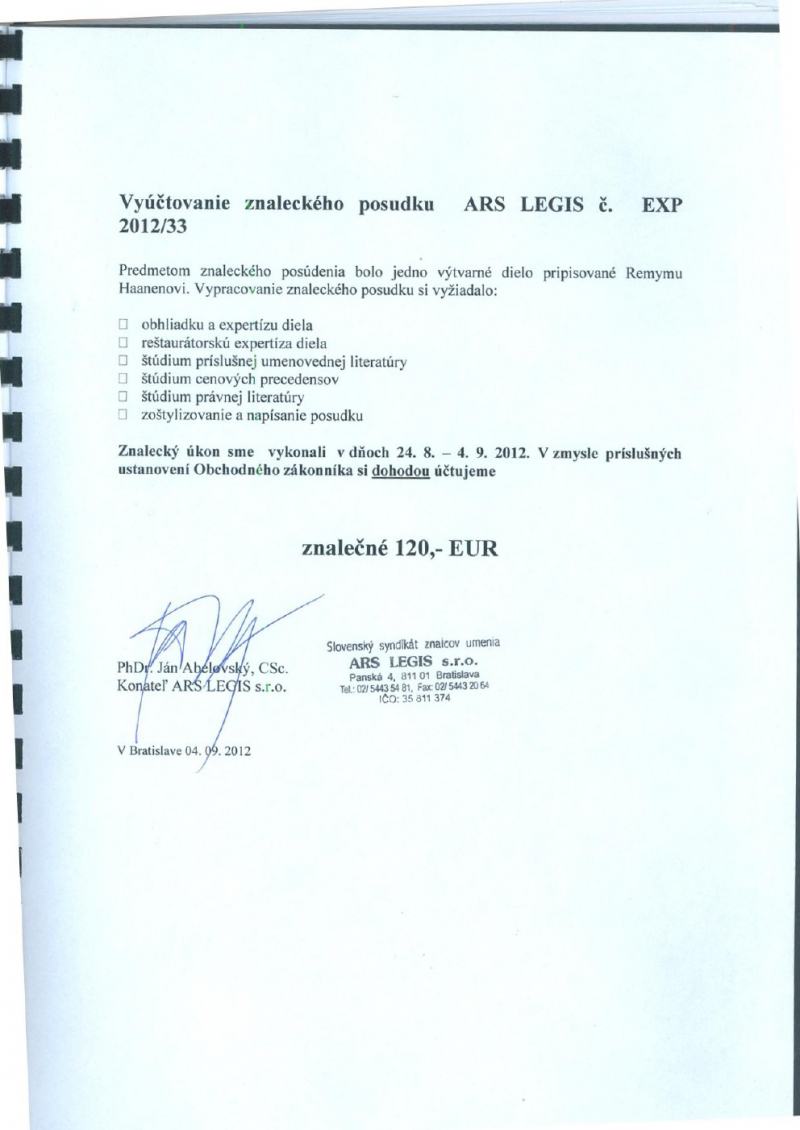 K dielu je dodaný posudok firmy ARS LEGIS s.r.o.