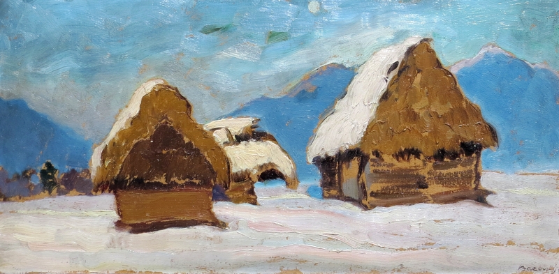Pre Bazovského typická prehľadnosť kompozičnej skladby a žiarivosť farebného charakteru sa stala kľúčom k jeho výtvarnému spracovaniu slovenskej vizuálnej výnimočnosti. Autorovo prezentované dielo znázorňujúce drevenice uprostred zimy na vysočine je svojou modernou formou a orientáciou na tradičné národné motívy vyjadrením smerovania priebojnej výtvarnej generácie prvej polovice 20. storočia. Bazovský sa radí k predstaviteľom komornejšej vetvy, pre ktorých bola určujúcou intímnosť motívov a s odstupom času i vygradovanejší kolorit a dynamický rukopis cizelujúci rýdzo slovenskú tvarovú skutočnosť.