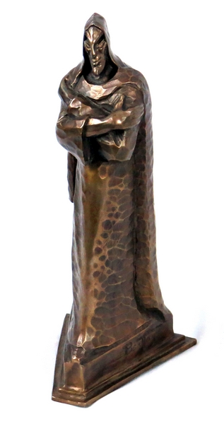 Predmetné dielo Júliusa Bártfaya reprezentuje postavu Mefistofela/Mefista – povestnej démonickej postavy, ktorá sa dostala do povedomia širšej verejnosti vďaka Goetheho dráme Faust. Podľa tohto literárneho diela Mefistofeles ponúkol učencovi Faustovi trvalé poznanie a večnú mladosť výmenou za jeho dušu. Bártfayova plastika zobrazuje Mefista ako tajomnú diabolskú postavu zahalenú v dlhom plášti s kapucňou na hlave. Autor formálnou úpravou zovňajšku figúry i tvárnením jej ľstivého výrazu vypovedá o zákernom charaktere Mefistofela, jeho úskočnosti a úmysloch škodiť.