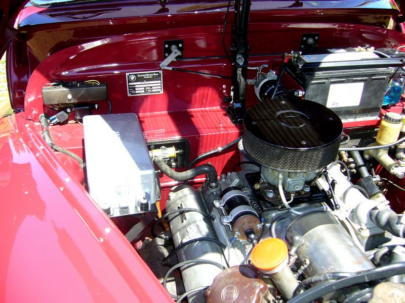Historické vozidlo BMW V8 Barockengel červenej farby.