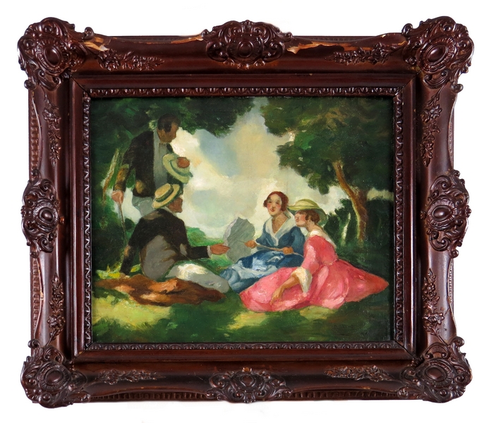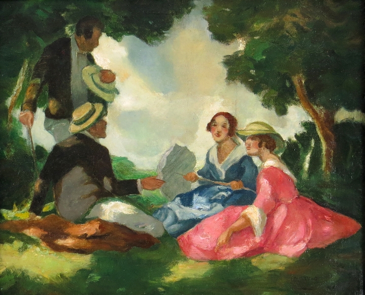 Princípy práce s farbou sú odlišné od doby k dobe a od umelca k umelcovi. Dominantné postavenie má farba v tvorbe Gejzu Udvaryho. Maďarský umelec je maliarom v najbytostnejšom slova zmysle, ktorý pracuje s paletou neprestajne. Ako vidno na prezentovanom diele, Udvary síce vychádza z tradičných kompozícií, ale význam koloritu chápe skôr v zmysle moderných európskych prúdov prelomu 19. a 20. storočia. Jeho spoločnosť v prírode sa vyznačuje plošným, zjednodušeným ponímaním obrazovej plochy podporenej farebným tieňovaním. Autor tiež skúma pôsobenie slnečných lúčov na ľudské postavy, ktoré narúšajú celistvosť tvarov a ich detailnosť.