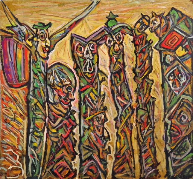 22 000 Sk - Dedinská ulička. Okolo 1965. Olej na kartóne. 34x50 cm.