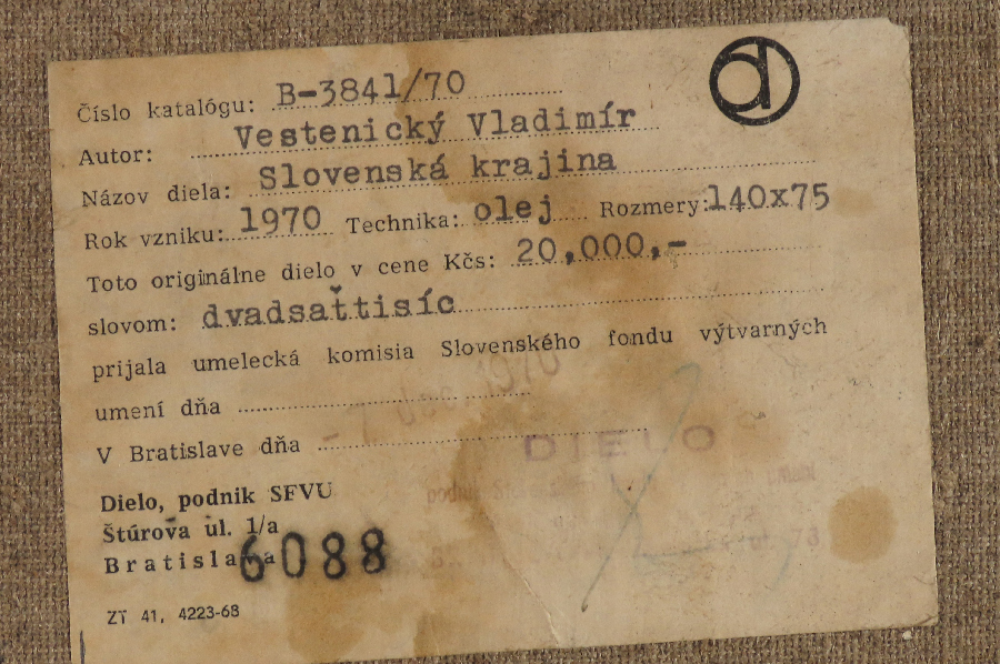 Vladimír Vestenický sa narodil 14. 12. 1919 v Chrenovci-Brusne, zomrel 20. 2. 1979 v Bratislave. 1941-43 študoval na Oddelení kreslenia a maľovania SVŠT v Bratislave (prof. Mallý, Schurmann). 1943-44 štipendium španielskeho univerzitného syndikátu na Akadémii San Fernando v Madride (prof. Zuloga, Diaz). Po návrate žil v Prievidzi. 1945 študijný pobyt v Paríži, kde s prestávkami žil až do 1948. 1948 starosta Prievidze. 1950 obvinený z velezrady, väznený. Od 1952 žil v Bratislave. Z literatúry: Gazdík, I.: Vladimír Vestenický. Bratislava 1970, 1978.