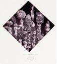 35 000 Sk,- Labyrint sveta a raj srdca (Veľký hluk). Rok 1989. Farebná litografia na ručnom papieri. 39x29,8 cm. 32 000 Sk,- Pekný deň. Rok 1988. Litografia na papieri 6/25. 39x29 cm.