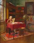 1 527 € - Čítajúci rabín. Okolo 1900. Olej na dreve. 29 x 38 cm.