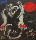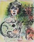 Marc Chagall ( vlastným menom Mosche Segal), sa narodil 7. 7. 1886 vo Vitebsku, zomrel 27. 3. 1985 v St. Paul de Vence.Vo svojich devätnástich rokoch začal maľovať a súčasne študoval u maliara Pena vo Vitebsku. V štúdiu pokračoval u secesného symbolistu Baksta na Akadémii výtvarných umení v Petrohrade (od 1907). V roku 1910 odchádza na cestovné štipendium do Paríža. Tam sa zoznamuje s B. Cendrasom, M. Jacobom a G. Apollinairom. Už v čase do prvej svetovej vojny si vytvorí vlastný nezameniteľný štýl - spájanie fantaskných motívov s kubistickou štýlovou dikciou. Na jeho začiatky obzvlášť vplývali Delaunay a La Fresnay. 1914 návrat do Ruska (v Berlíne mu Herwart Walden v tom istom čase poriada prvú výstavu). 1916 vystavuje so skupinou Guľový dolník v Moskve (s Malevičom), po 1917 zastával funkciu komisára pre výtvarné umenie vo Vitebsku, kde založil maliarsku školu. 1922 odchádza cez Berlín do Paríža, kde sa trvalo usadzuje. V dvadsiatych rokoch ilustroval leptami Gogoľove Mŕtve duše, La Fontainove Bájky a Bibliu. 1941 odchádza na pozvanie Múzea moderného umenia do New Yorku (1946 veľká retrospektíva jeho diela). 1949 návrat do Paríža, 1951 cesta do Izraela, 1952 a 1954 do Grécka. Marc Chagall má v modernom maliarstve a grafike 20. storočia popredné a zároveň osobité miesto. Vyšiel síce z kubizmu, ale jeho princípy nevyužíval na analýzu obrazového predmetu, ale na zosilnenie sugestívneho účinku fantasktných predstáv jeho individuálnej mytológie. Chagallovo dielo malo široký vplyv na vývin moderného umenia a dá sa povedať, že je popri Picassovi rozhodujúcou postavou novodobého vývinu svetovej maľby. Z literatúry: Cogniat, (1968, Paríž), Mayer, F. (1968, Kolín d. Rýnom), Zykmund, V. (1965, Praha).