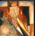 Technikou olejomaľby, akvarelu, grafiky, a kombinovaných techník rozvíja analyticko-mystickú podobu absolútna, ktorá je štrukturovaná presnou kompozíciou, vyváženou farebnosťou a protikladným vyjadrením dynamického estetizmu a statickej vágnosti.