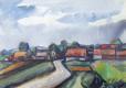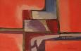 500 € - Červená krajina. Rok 1969. Olej na sololite, 61 x 80 cm. (Darte - 30.5.2010)