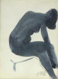 250 000 Sk - Zátišie s čajníkom, šálkou a fľašou. Rok 1958. Olej na plátne, kašírované na kartóne. 29,5 x 38 cm.