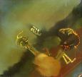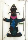 110 000 Sk - Uchopiteľ snov rozkročený naširoko I. Okolo 1980. Olej na preglejke. 117 x 84 cm.