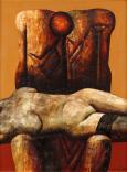 9 200 € - Ikona IV. 1991. Olej, kombinácia techník na preglejke. 61 x 46 cm.