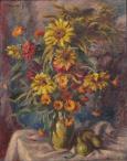 35 000 Sk - Kytica slnečníc. Okolo 1960. Olej na lepenke. 80 x 46 cm.